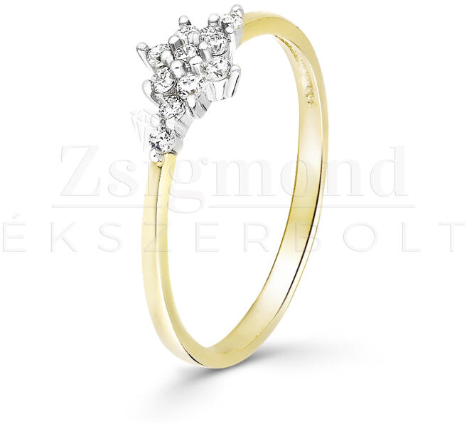 Az általunk forgalmazott arany ékszerek 14 karát finomságúak, melyek leginkább alkalmasak a gyakori viseletre. Üzleteinkben esztétikailag, és minőség szempontjából is gondosan válogatott készletet tartunk, web-áruházunkba innen emeljük ki a legszebb darabokat. Ha az Ön elképzelése más, örömmel felkutatjuk a kívánságának megfelelő ékszert. Kollekciónkból szívesen ajánljuk a több színnel kombinált ékszereket, vagy a mai trendekhez híven, a fehér vagy rozé aranyból készült típusokat.  Az ékszerek többsége cirkónia kővel díszített, a valódi köves fazonok az Ékszerek gyémánttal címszó alatt találhatók. A körültekintően megválasztott arany ékszer mindig szívet melengető ajándék, találjuk meg együtt a megfelelőt! Ez a gyűrű bármelyik női méretben, 5-8 munkanapos szállítási határidővel rendelhető! (Fehér aranyból is kapható. ) A készleten lévő gyűrűhöz képest, kisebb vagy nagyobb méretben történő megrendeléskor a vételár változhat. Erről Ön is érdeklődthet megadott elérhetőségeinken, illetve kollégáink a megrendelést követően minden esetben tájékoztatják vásárlóinkat.