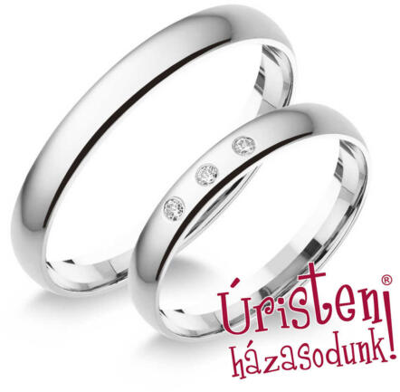Kézzel készült, klasszikus, fehér arany karikagyűrű, 3 cirkónia kővel díszített.