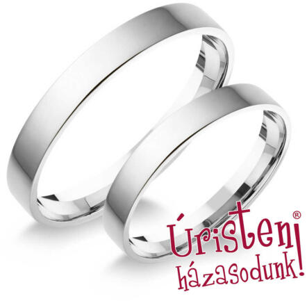 Kő nélküli, kézzel készített, hagyományos fehér arany karikagyűrű.