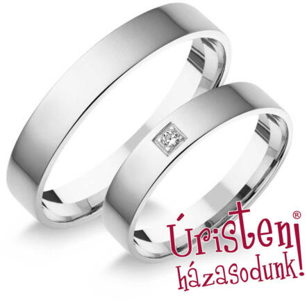 Kézzel készített, klasszikus, fehér arany karikagyűrű cirkónia kővel díszítve.