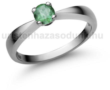 Klasszikus, szoliter gyűrű smaragd kővel, fehér arany foglalatban.