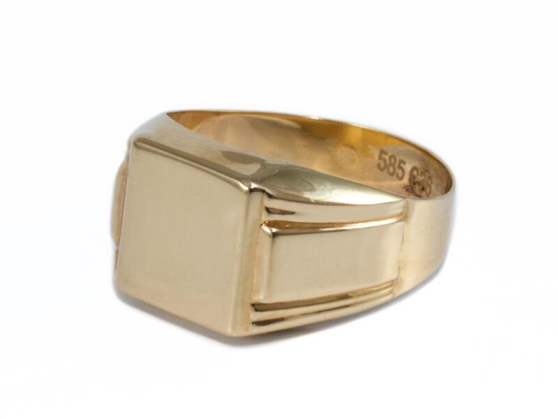 Modern stílusú, könnyített, üreges kialakítása ellenére igen mutatós, ez a fényes, gravírozható fejrésszel, valamint préselt mintás vállrésszel készült férfi arany pecsétgyűrű.