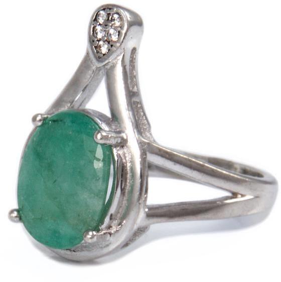 Modern stílusú, ovális smargd kővel ékített, cirkónia köves is, áttört kialakítású, csepp ezüstgyűrű.