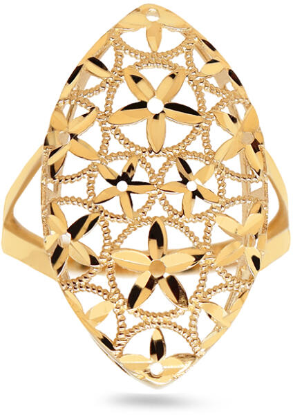 Ellipszis gyűrű csillogó virágmintával, 9K sárga arany, modell IZ31088HR