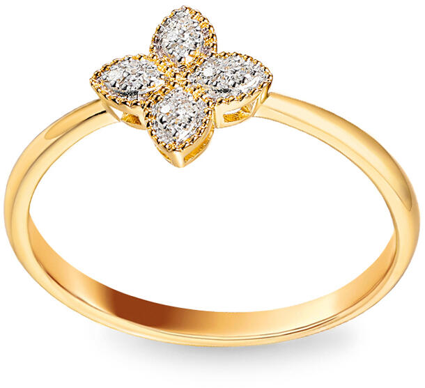 Gyémánt négylevelű lóhere gyűrű, 14 karátos sárga arany, modell IZBR1490P
