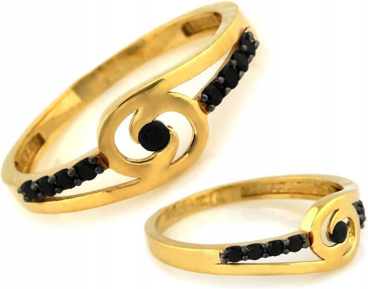 Lovrin Arany gyűrű 585 elegáns fekete cirkóniákkal r15, divatos női modellALLEGRO