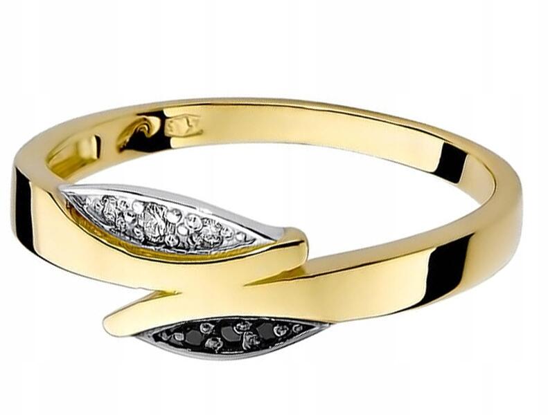 Lovrin Arany gyűrű 585 elegáns, fekete gyémántokkal díszítve ajándékba 23rALLEGRO