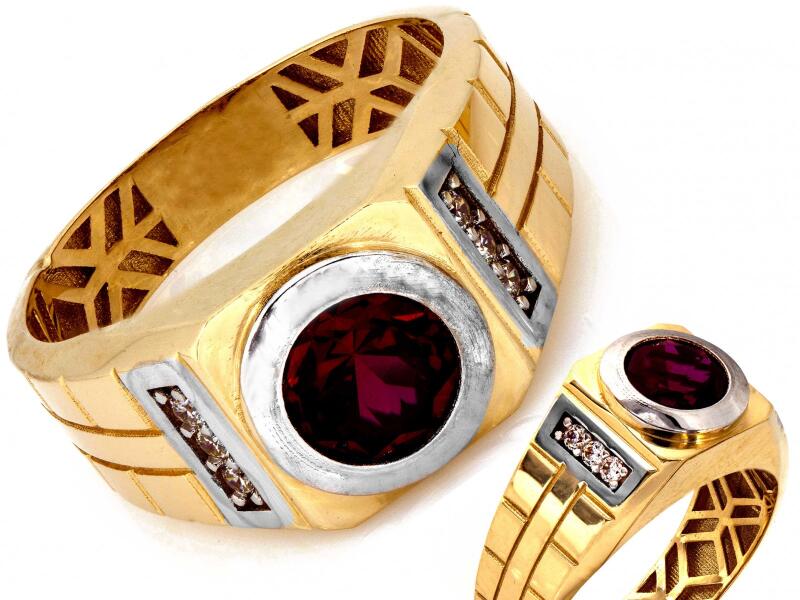 Lovrin Arany gyűrű cirkóniákkal 585 piros kő 4.56g R20 kétszínű arany 14k (62108426)ALLEGRO