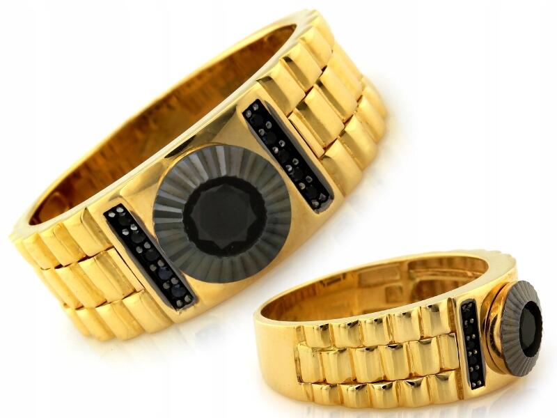 Lovrin Arany pecsétgyűrű 585 fekete ónixszal és cirkóniákkal díszítve 6, 96g R28 ajándékba (Lovrin)ALLEGRO