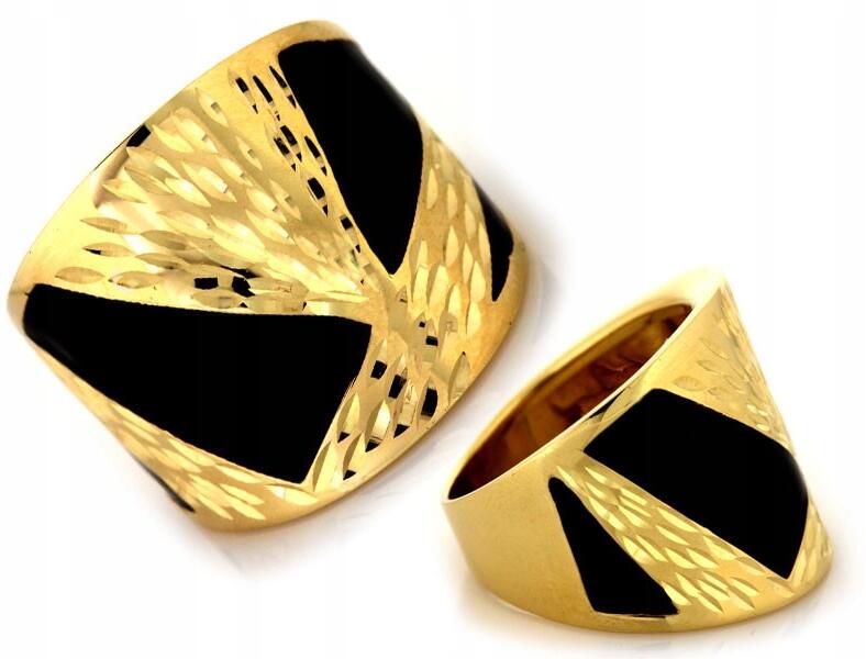 Lovrin Arany széles gyűrű 585 14kt fekete zománccal díszítve 5.65g ajándékba (Lovrin)ALLEGRO