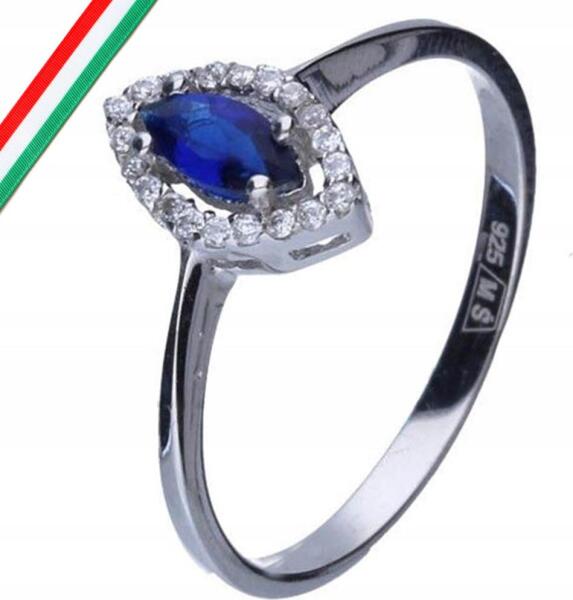 Lovrin Elegáns, 925-ös ezüst gyűrű cirkónia zafírkék könnycseppel, divatos mintával (Lovrin)ALLEGRO
