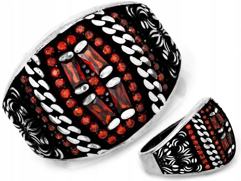 Lovrin Ezüst gyűrű piros cirkóniákkal, 925-ös, oxidált r22 ajándék 7, 54gALLEGRO