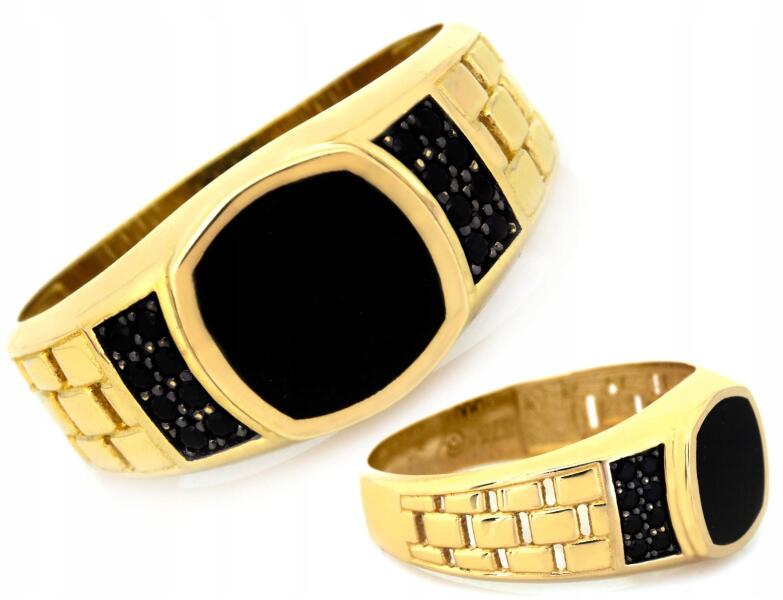 Lovrin Férfi arany gyűrű 585 fekete cirkóniával, 5.04g, kétszínű pecsétgyűrű (62098111)ALLEGRO