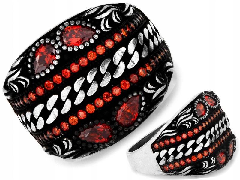 Lovrin Nagy méretű, 925-ös ezüst gyűrű rubin cirkóniákkal, r24 páncéllánc, 8, 64gALLEGRO