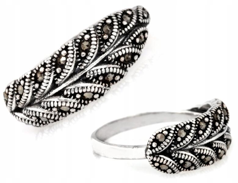 Lovrin Stílusos, elegáns, 925-ös ezüst gyűrű markazitokkal, levél mintával, 18-as méret (44239559)ALLEGRO