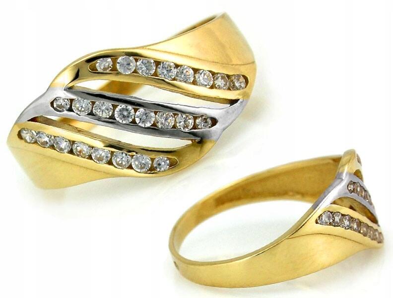 Lovrin Széles, arany gyűrű cirkóniákkal, 585 14k, 2.58g, női, r21, divatos (43792567)ALLEGRO