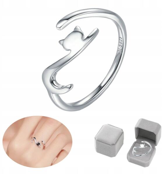 Női Gyűrű Ezüst 925 Cica Állítható Ideális Ajándék (Pierścionek Srebrny 925 Kot Kotek)ALLEGRO