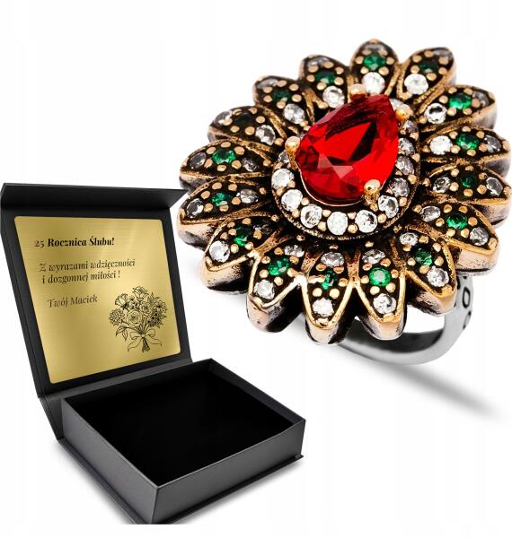 Ottomania Ezüst Gyűrű 925 Cirkónia Gránát Ékszer Női Gravírozás Ajándék (kpl-132p_16r)