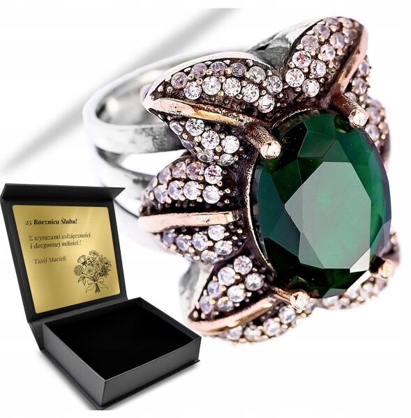 Ottomania Ezüst Gyűrű 925 Cirkónia Smaragd Ékszer Nőknek Gravírozás (501p_14r)