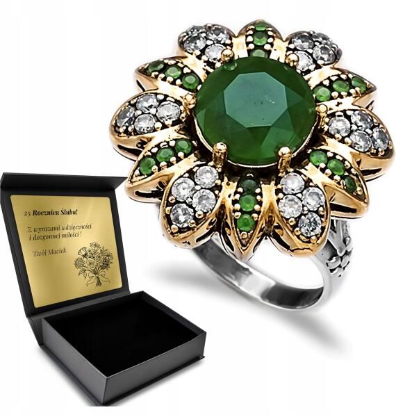 Ottomania Ezüst Gyűrű 925 Cirkónia Smaragd Ékszer Nőknek Gravírozás (kpl-049p_13r)