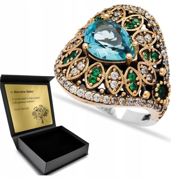 Ottomania Ezüst Gyűrű 925 Cirkónia Smaragd Topáz Női Gravírozás Ajándék (kpl-021p_20r)
