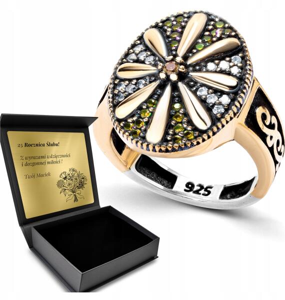 Ottomania Ezüst Gyűrű 925 Cirkónia Virág Ékszer Női Gravírozás Ajándék (kpl-147p_16r)