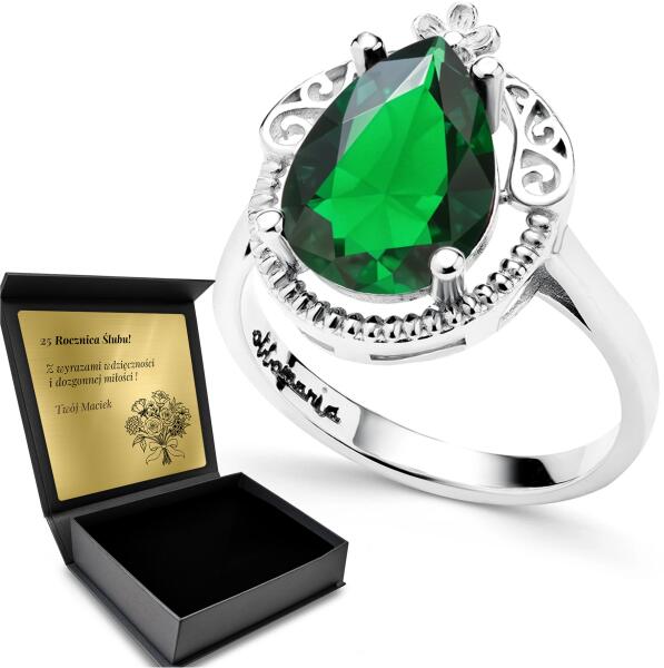 Ottomania Ezüst Gyűrű 925 Smaragd Ékszer Nőknek Gravírozás Ajándék (R180p_20r)