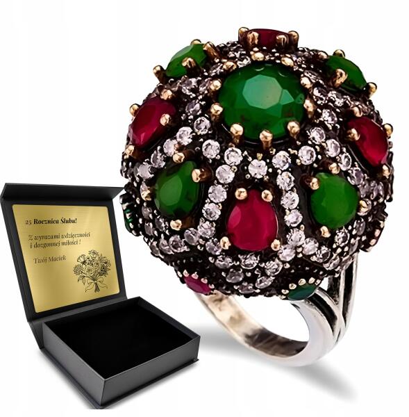 Ottomania Ezüst Gyűrű Cirkónia Rubin Smaragd Ékszer Nőknek Gravírozás (528p_25r)