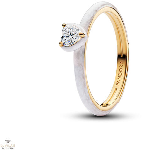 Pandora Me szív gyűrű cirkóniával és csillogó fehér zománccal 50-es méret - 163088C01-50
