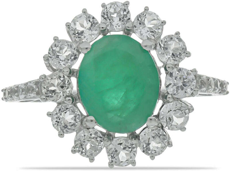 Smaragd és Topáz Ezüst Gyűrű - 4.05 ct Brazíliai Smaragd